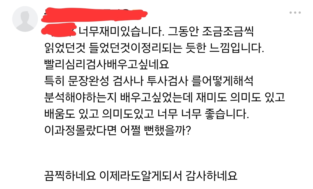 지난 6년간 참 많은 분들과 함께했습니다. 이 과정을 들은 분들의 강의 후기를 글 아래에 올려드릴테니 확인하시면 좋겠습니다. 우선 제가 이야기 드리고 싶은 부분은 바로 강의 기간입니다. 온라인에 독서치료, 독서심리상담사, 그림책심리지도사, 그림책심리상담사 등의 키워드로 검색해보면, 정말 많은 과정들이 나옵니다. 하지만 강의 기간이 말도 안되게 짧은 것을 알 수 있습니다. 학부는 4년, 석사는 2년, 박사 과정은 3년입니다. 물론 방학을 빼면, 최소 한 학기 3월로 계산해봐도 1년에 6개월씩은 공부를 해야 합니다. 자! 그렇다면, 석사과정이라고 가정을 해보면, 최소 1년은 공부를 해야 전공 공부를 훑어볼 수 있는 시간이 됩니다. 하지만, 많은 과정들이 단 2달이나 3달만에 자격증을 발급하는 것에 저는 이해가 되지 않습니다. 심지어 혼자서 하루만에 과정을 다 듣고 자격증을 신청하는 것도 있습니다.... 자격증 발급비로 돈을 버는 장사라고 생각합니다.